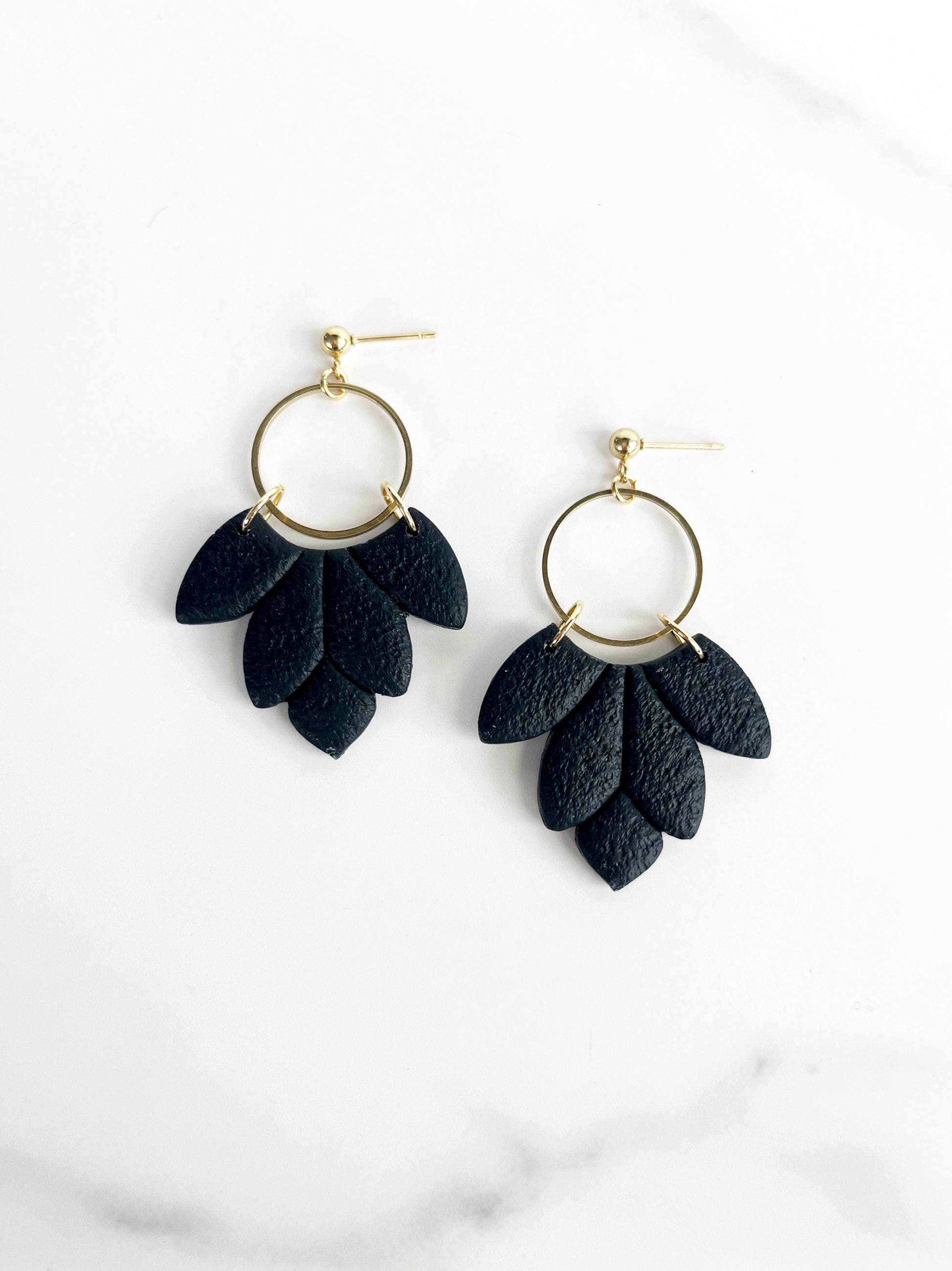 - Surgical steel ear post rhodium plated with a gorgeous shiny gold/shiny silver or matte black finish - great for sensitive ears as rhodium is nickel-free (hypo-allergenic)